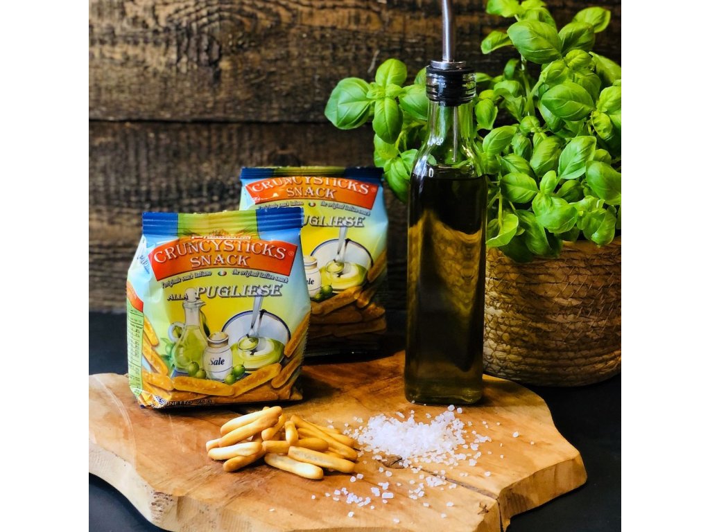 Crunchysticks alla Pugliese je zdravý snack vyrobený len z múky, oleja, droždia a štipky soli.